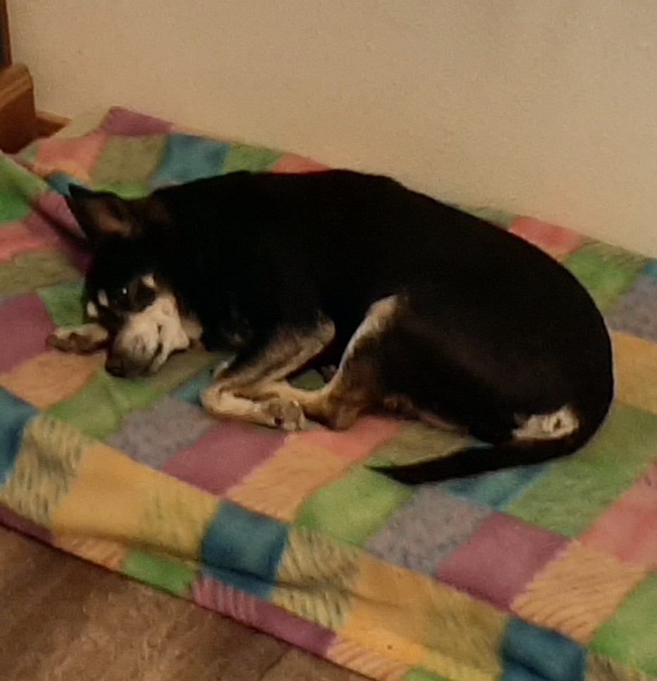 We have five dog beds scattered around the house so she can lay in whatever room I’m in. She’s never been a snuggler, but I do miss her laying beside me on the couch or in my chair. She can no longer jump up on the furniture and doesn’t like to be picked up. So we watch her sleeping on a dog bed and remember the good times.