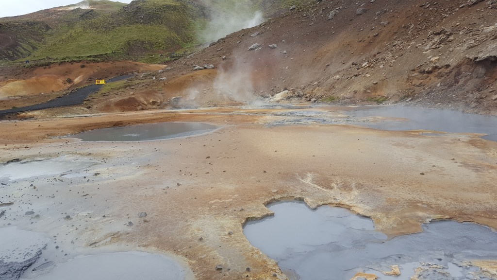 While I enjoyed Krýsuvík mud pools for their colors, steam, and uniqueness, though I could have used a clothes pin for my nose due to the sulfuric steam, poor Hawke finds a body in a mud pool.