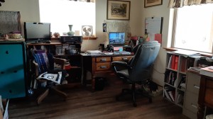 While our grandson was visiting, I had to shift things in the office so the Murphy bed was easy to lower and raise. I ended up facing the wall and my back to the door. During this time I wasn’t feeling productive and was out of sorts when I’d sit down at my desk to work.