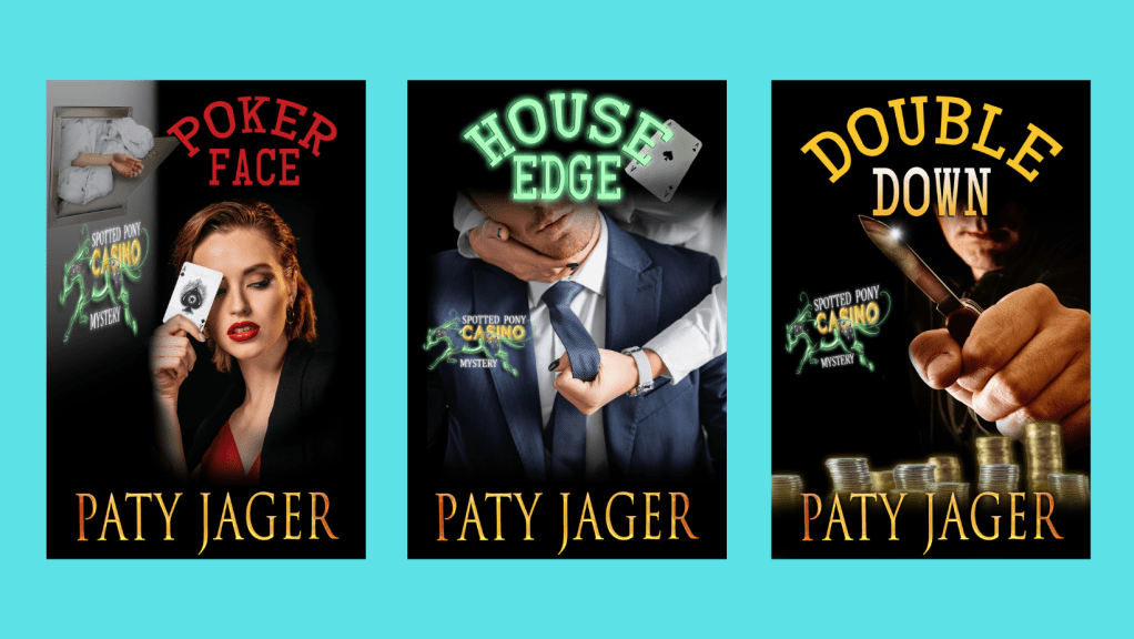 After taking an online workshop on book covers, I worked with my cover designer to rework the Spotted Pony Casino Mystery books. I went from this: