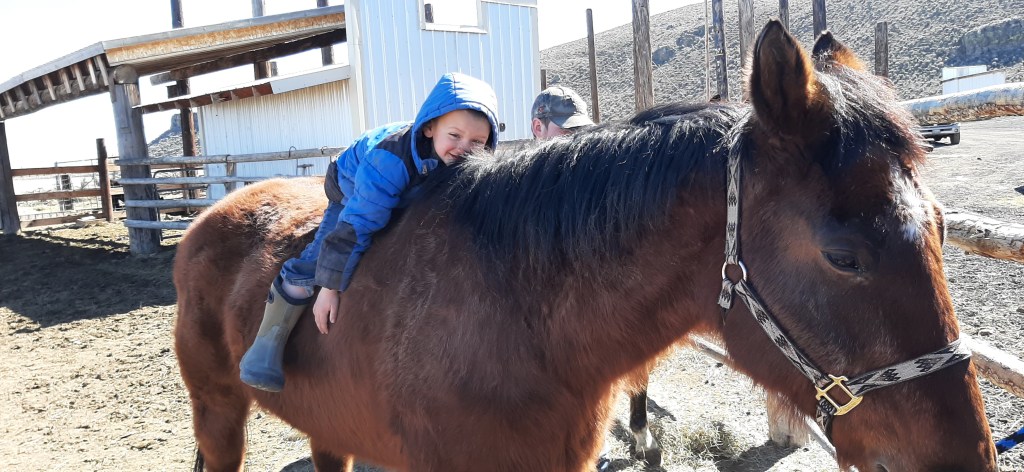 As you can see, littlest grandson thought it was warmer to lay on my gelding Jan.