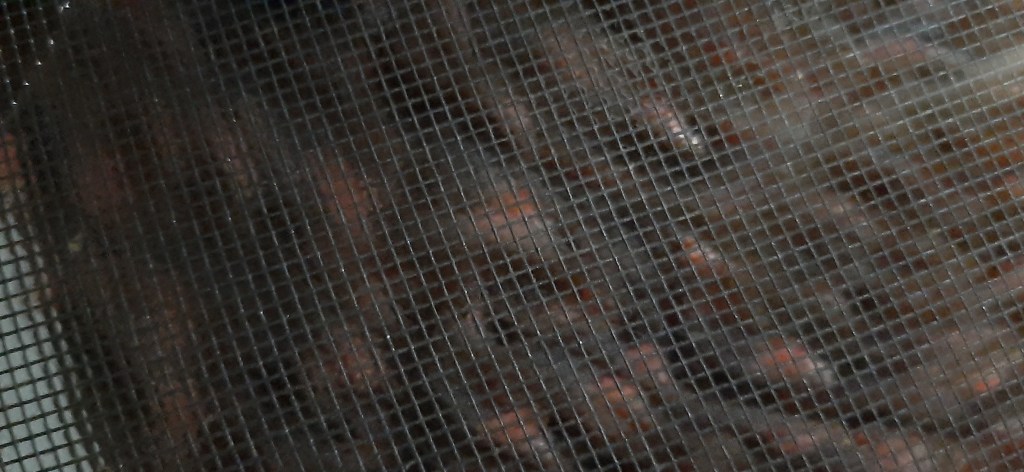 My brother had to check the temperature of the water in the egg hatching room. He pulled one of the trays out and I tried to get a photo of the hatching eggs.