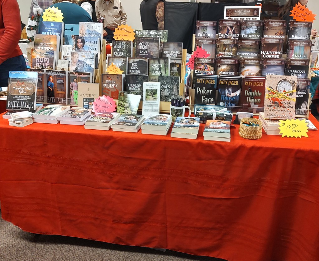Four days into December, I sent the book off to my critique partner and beta readers. Whew! Now I could concentrate on decorating, getting a Christmas Tree, and setting up my books at the local Christmas Jamboree. I sold more books there than I had thought I would. So it was a great day. And my daughter had a table beside me selling fudge she’d made and boxes of her organic Rural Roots pork.