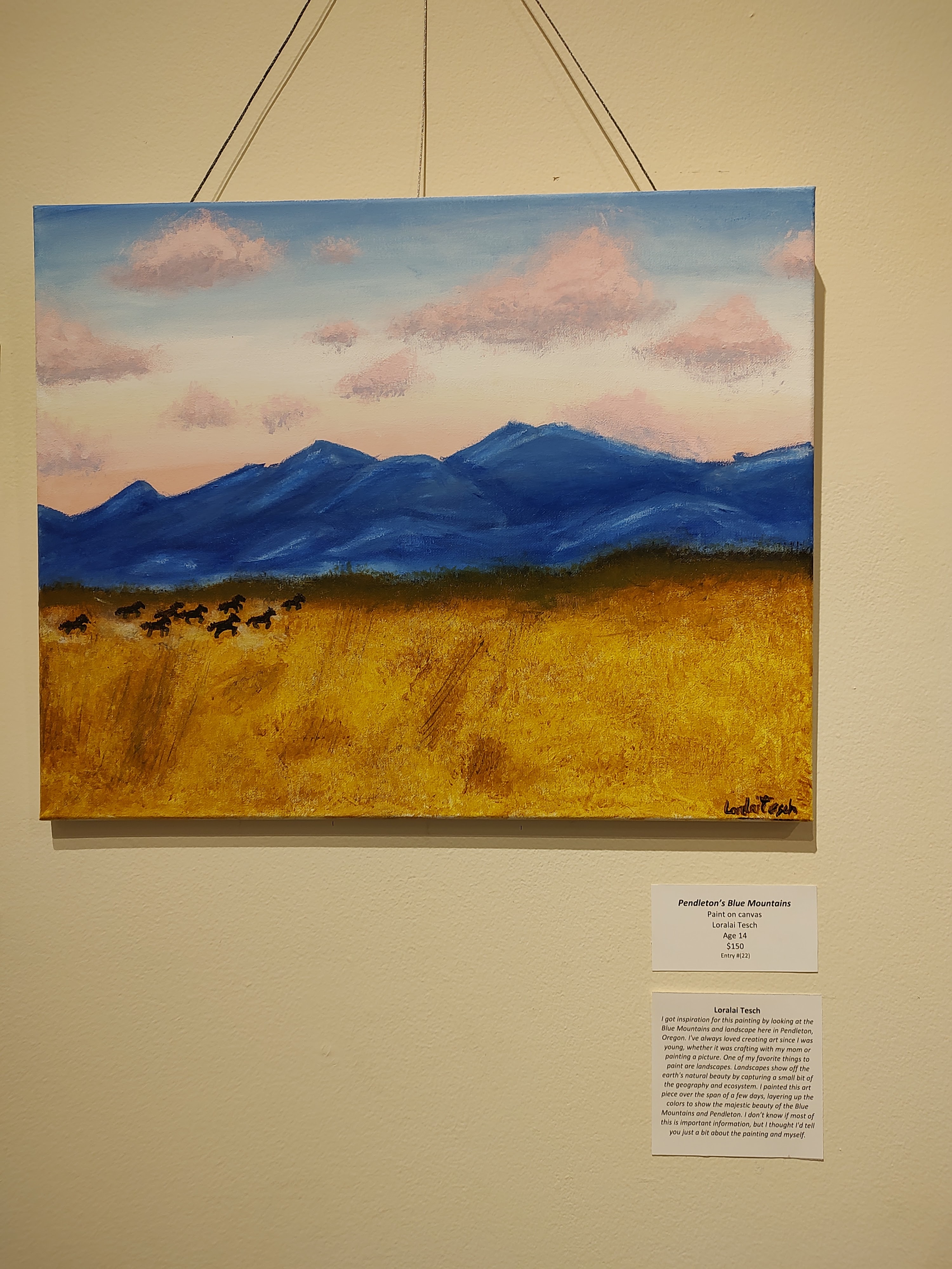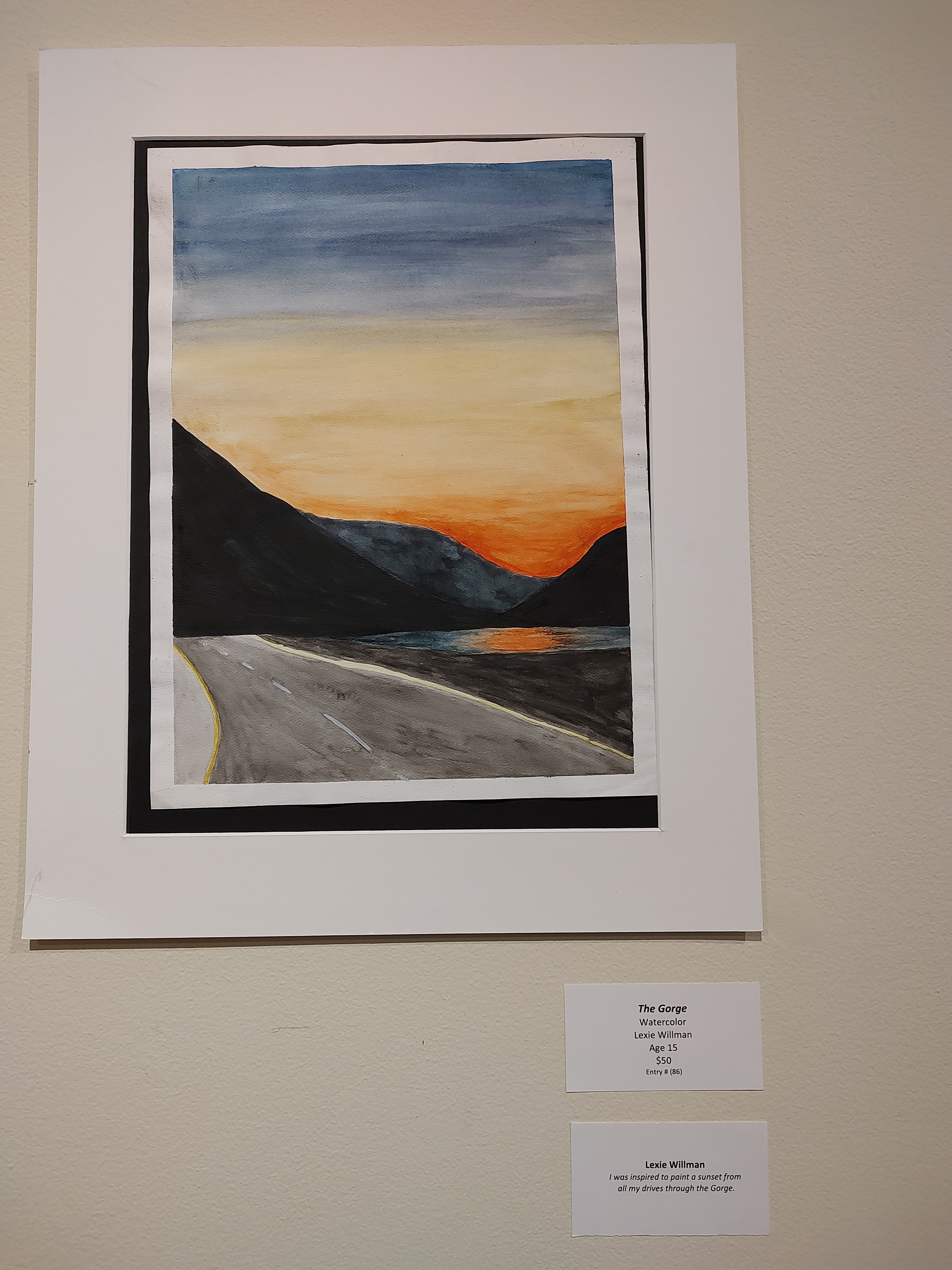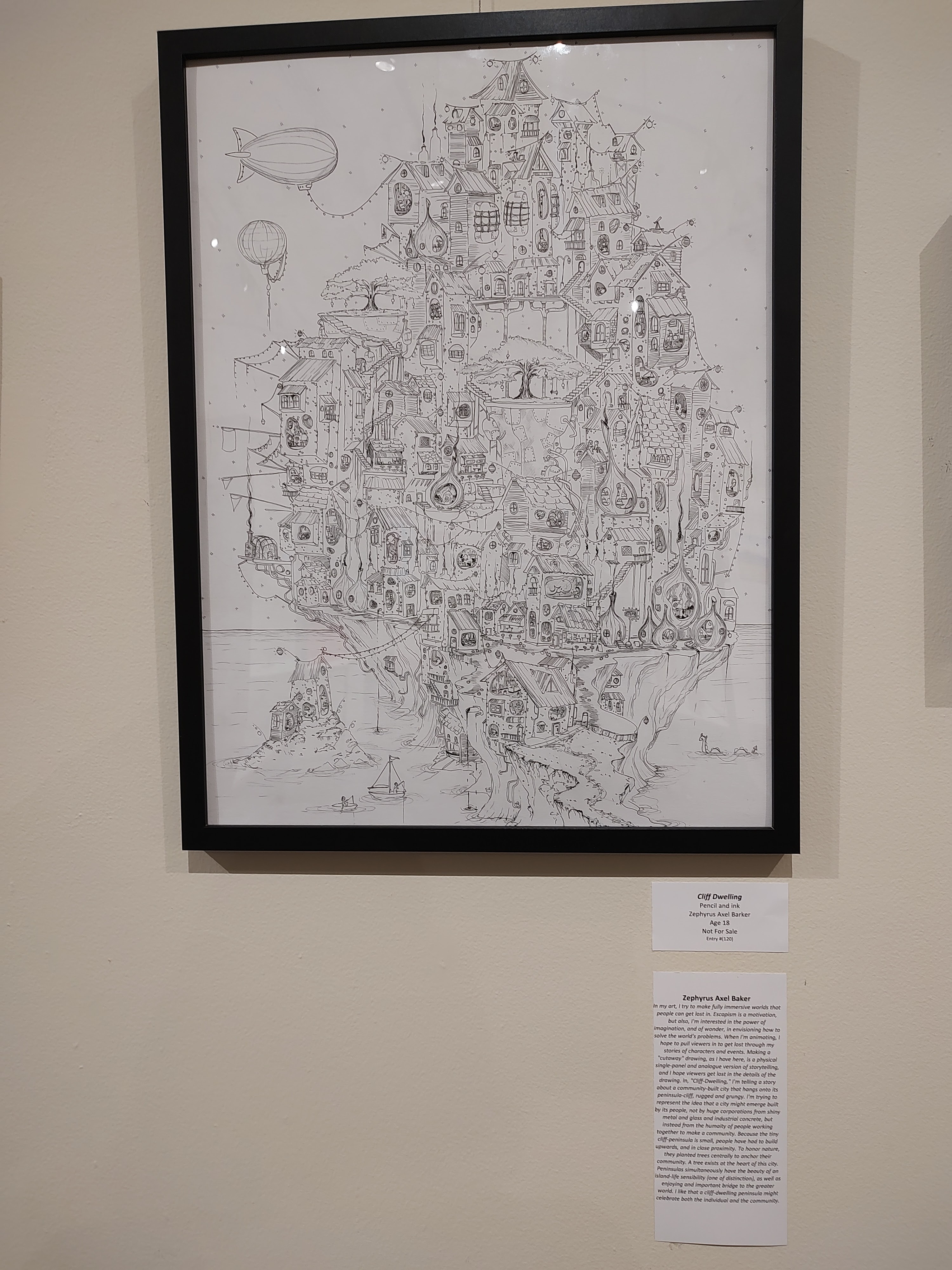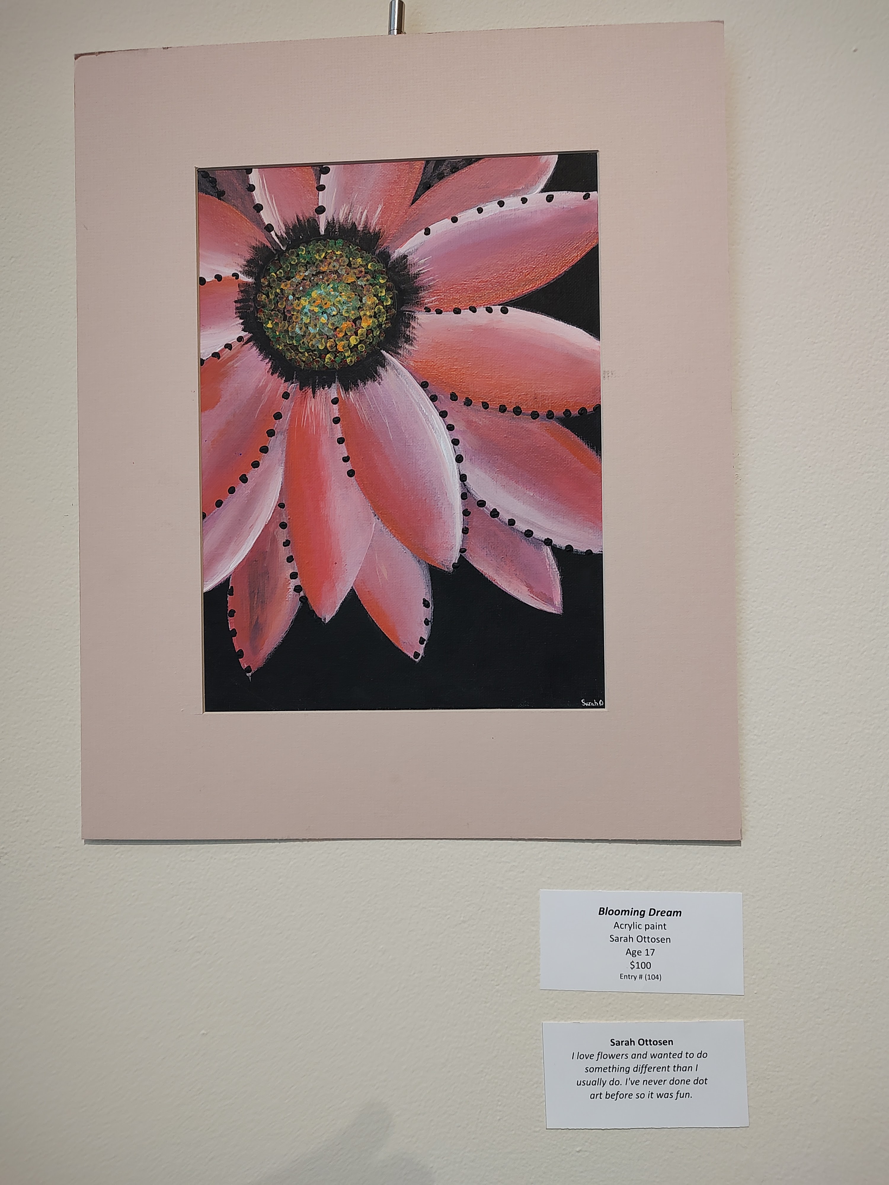 But it was the exhibit they had going now through March 18th that I spent the most time looking at. It is the 2023 ArtWORKZ Junior Art Show & Competition. There were paintings, drawings, pottery, beading, metal work, and other mediums of art. I took photos of the pieces that made me feel something.