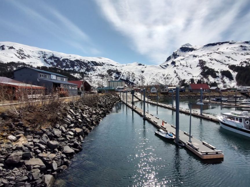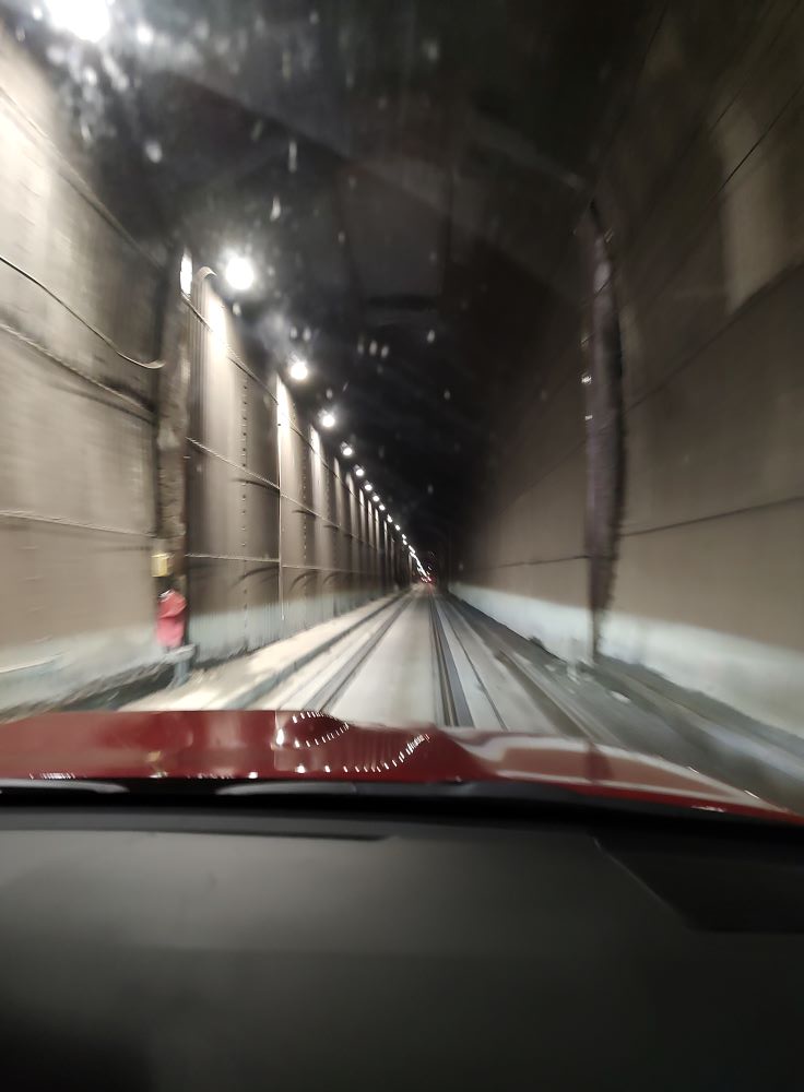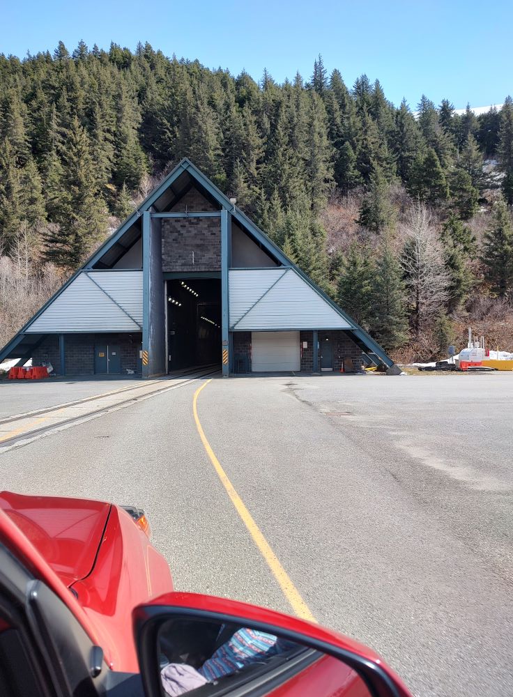 Day 5 we drove to Whittier. We had attempted this trip years ago but there had been so many cars lined up to go through the one lane tunnel that we left. This time of the year there was little traffic. We were only four cars back from the lead car. The man-made tunnel to get to Whittier is 2 1/2 miles long, with a train track running down the middle. The entrance to the town is shared by cars and trains. There is a stop light on both sides of the tunnel that lets traffic go through every half hour. Here are some tunnel photos.
