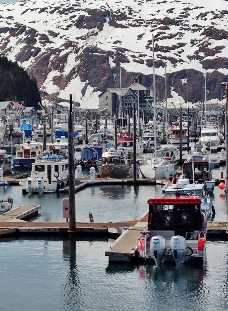 In the other side is a picturesque harbor town. Lots of fishing boats, a few restaurants and souvenir stores. A large apartment complex for the people who work at the businesses to live. And a beautiful old lodge that was being renovated. We had really good meal at the Swiftwater Seafood cafe.