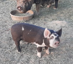 Our daughter raises IPP pigs (Idaho Pasture Pigs). She has a litter that were born not too long ago. This is a photo of one that I thought was cute.