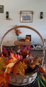 I have my house decorated inside and out with fake Fall leaves, pumpkins (scary and plain), and lights and candles. I’m not a huge fan of it getting dark earlier. That means the feeding has to be done earlier and that cuts into the afternoon writing and sewing time.