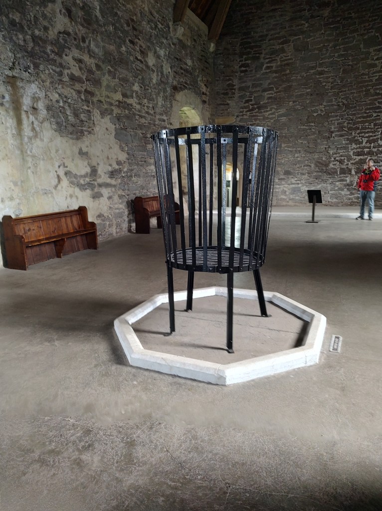 This was the basket that held the wood to keep the guests warm during a banquet. It sits in the middle of the banquet hall.