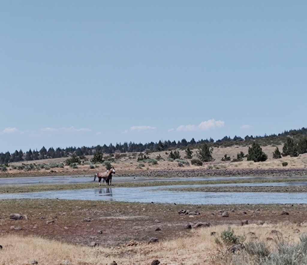 We also saw the wild horses in their usual spot near a watering hole. Some were even in the water.
